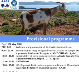 Dal 21 al 23 Maggio 2018 si terrà l’iSAGE summer school presso il Mediterranean Agronomic Institute di Saragozza (Spain). Du